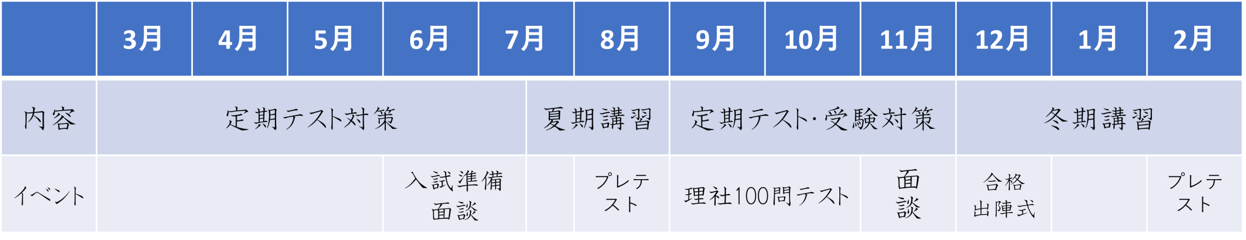 内部進学テストなどについても、生徒面談を行い、学校と生徒に合わせた個別プランニングを行います。
